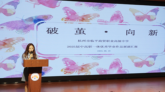 6月18日,浙江開放大學(xué)臨平學(xué)院2025屆中高職一體優(yōu)秀畢業(yè)作品展演匯報在學(xué)校小劇場隆重舉行。本次展演以“破繭·向新”為主題,分為四大篇章,全方位展現(xiàn)了學(xué)子們在專業(yè)學(xué)習(xí)中的沉淀、突破與成長。