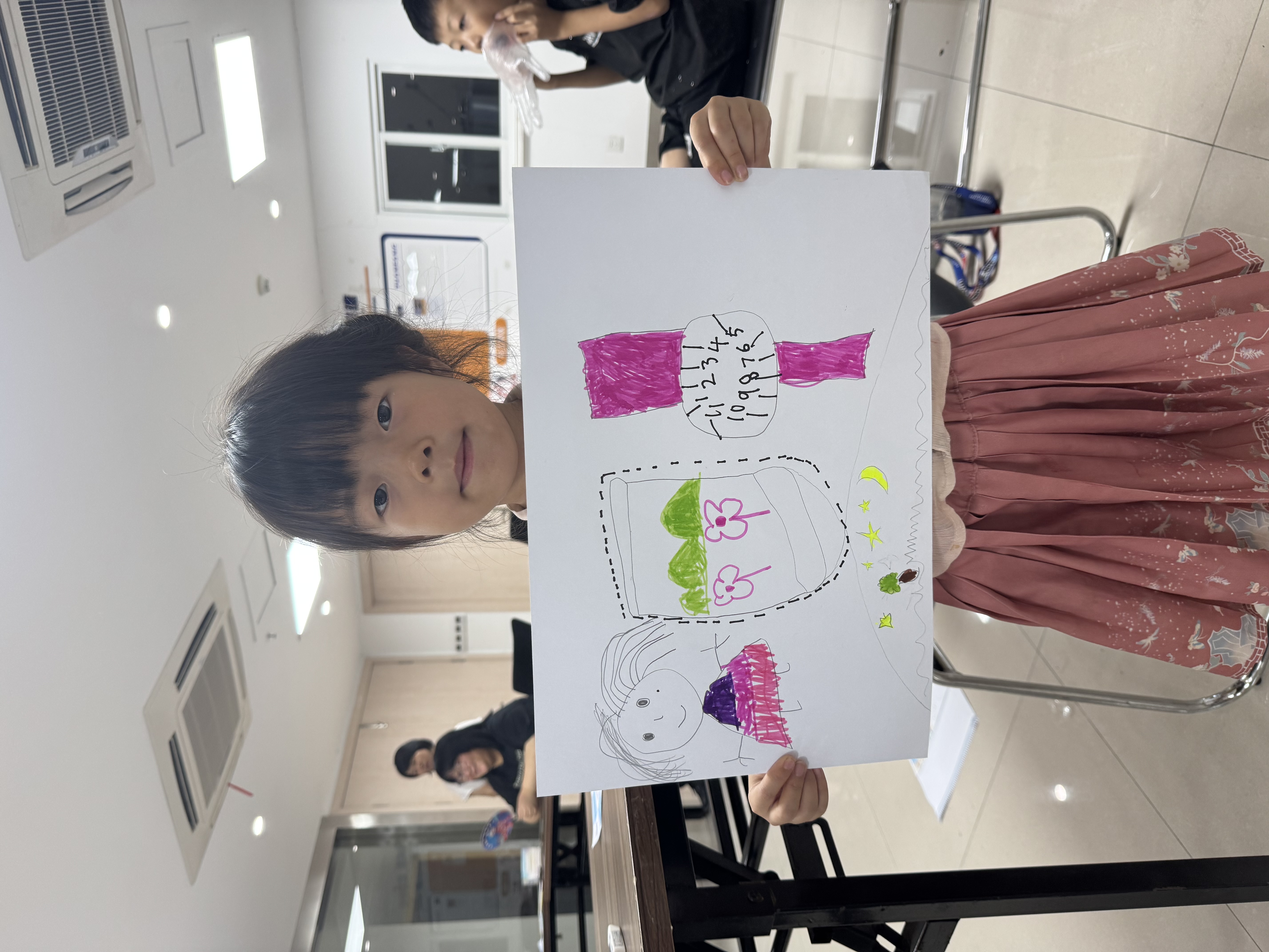 下午,社區(qū)邀請轄區(qū)D1藝術(shù)空間的專業(yè)老師帶來《時間聯(lián)想》創(chuàng)意思維繪畫課。“沙漏可以代表時間”“鐘表指針轉(zhuǎn)一圈就是一天”“年輪可以代表樹木生長的時間”,在老師們的引導(dǎo)下,孩子們圍繞沙漏、鐘表等時間載體展開想象,用藍(lán)色渲染星空、用綠色勾勒草地,一幅幅時間流轉(zhuǎn)的創(chuàng)意畫逐漸成型。