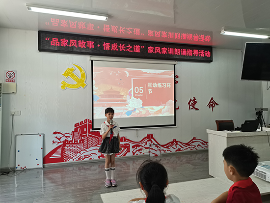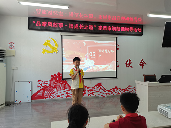 互動練習環節氣氛熱烈,孩子們紛紛自信登臺展示。有的用稚嫩而真誠的語言,分享了爺爺教導自己“誠實守信”的家庭故事;有的深情朗誦了傳統經典《弟子規》;還有的誦讀了課本中的古詩文名篇……現場掌聲不斷,充滿活力。