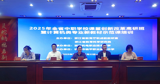 為全面落實浙江省新教材課程改革部署,促進中職計算機類專業(yè)課堂教學革新,強化新教材應(yīng)用效能,2025年7月19日,全省中職學校課堂創(chuàng)新改革高研班暨計算機類專業(yè)新教材《計算機網(wǎng)絡(luò)技術(shù)基礎(chǔ)》示范課培訓(xùn)在臨平職高正式揭幕,開展為期四天的研習活動。本次培訓(xùn)由浙江省教育廳職成教教研室與浙江省教育科學研究院共同主辦,浙江機電職業(yè)技術(shù)大學承辦,杭州市臨平職業(yè)高級中學協(xié)辦,來自全省各地市百余名計算機專業(yè)帶頭人、負責人及骨干教師參與。