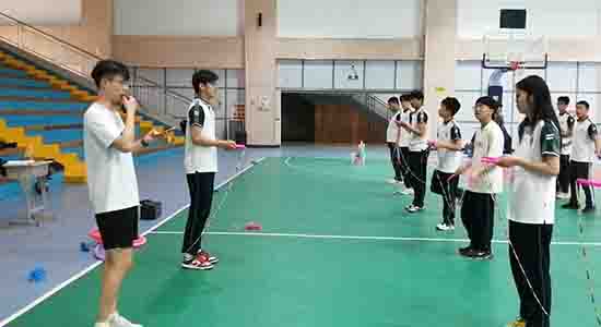唐一琨老師圍繞“八字長繩”的核心技巧與實戰應用,精心設計了一堂系統而富有活力的跳繩教學課。課程首先聚焦基礎動作,通過專門的“進繩腳步練習”和“出繩腳步練習”,指導學生掌握流暢、安全的進出繩時機與步伐要領,明確 “如何進繩”“腳步如何”“如何出繩”的關鍵要點。隨后,將技能融入實戰情境,組織“八字長繩比賽”檢驗學習成果,并通過“四角繩陣游戲”和“乘風破浪游戲”等趣味性活動,提升學生在變化環境中的協作與應變能力。最后, 唐老師引導學生學習“如何評估”自身和他人的跳繩表現,從技術動作到團隊配合進行反思總結,形成了從基礎掌握、情境應用到效果評估的完整教學閉環。