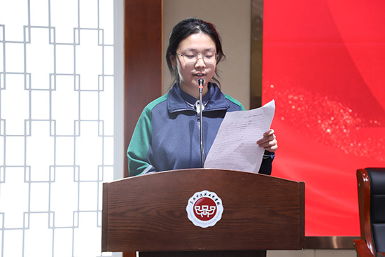 23造價大專1班的顧夢怡作為新團員代表分享感悟與決心,她指出加入共青團既是榮耀,更是使命。顧夢怡引用習近平總書記的講話,呼吁同學們懷抱夢想又腳踏實地,以更高標準要求自己,努力成為有理想、敢擔當、能吃苦、肯奮斗的新時代好青年。