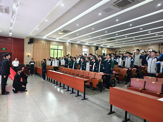 6月5日,嘉興市建筑工業學校于鼎建大講堂隆重舉行第26期業余黨校培訓班結業典禮暨2024學年第二學期新團員入團儀式。本次活動由校團委黃利婷老師主持。校黨委委員、副校長劉葉海,學生處副主任、校團委負責人張曉紅,各院系團總支書記、業余黨校結業學員以及新團員等近兩百余名師生齊聚一堂共同見證這場青春與信仰交織的盛典。