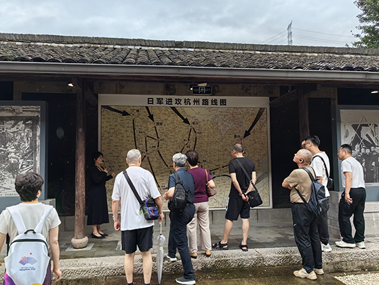 東信社區的退役軍人們懷著崇敬之心列隊步入余杭抗日戰爭紀念館。在講解員的細致引導下,大家專注凝視館內珍貴的歷史遺存:泛黃的老照片定格著烽火歲月,斑駁的抗戰文物承載著崢嶸記憶,詳實的史料記載還原了余杭軍民同仇敵愾、浴血奮戰的壯烈史詩。當目光觸及展柜中的土槍土炮與抗戰家書時,參戰老兵汪叔叔不禁熱淚盈眶。他輕觸展柜玻璃,動情說道:“這些家書字里行間都是革命先輩的家國情懷。作為退役軍人,我們必須守護好這份紅色基因,讓革命精神代代相傳!”