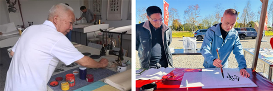 課程內容:幫助學員了解和掌握書畫基本技巧和知識,培養中國傳統文化的興趣和理解,增強學員的藝術創造力和審美能力,春節為當地群眾送對聯字畫。