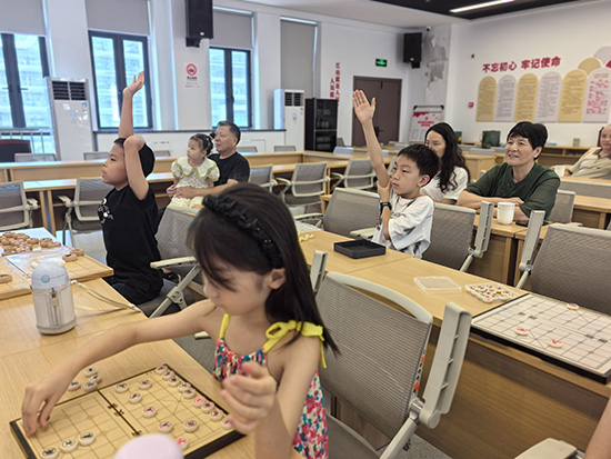 8月11日,杭州市濱江區浦沿街道巖大房社區黨群服務中心內彌漫著專注與溫馨的氣息。在濱江區社區學院的指導下,巖大房社區暑期“一老一小”象棋班正式啟幕,20余位白發長者與垂髫稚子隔枰對坐,在方寸棋盤間開啟了一場別開生面的傳統棋藝傳承之旅。未來12次課程中,象棋將成為連接社區老少的精神紐帶。