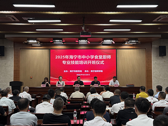 8月20日上午,2025年海寧市中小學食堂廚師專業技能培訓班(第五期)在海寧技師學院正式拉開帷幕。本次培訓為期5天,吸引了來自全市各中小學及相關餐飲單位的67名一線廚師參與。他們齊聚一堂,共同開啟一場以“技能提升、安全護航、營養優化”為核心目標的專業學習與交流的新征程。