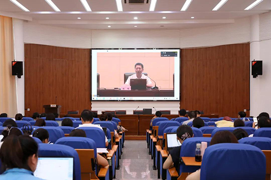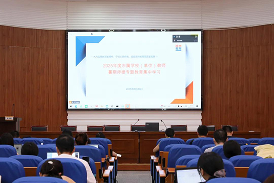8月26日,浙江省湖州藝術與設計學校全體教職工在學校報告廳觀看由湖州市教育局組織的2025年市屬學校(單位)教師暑期師德專題教育集中學習視頻直播。湖州市委教育工委專職副書記胡衛東主持會議。