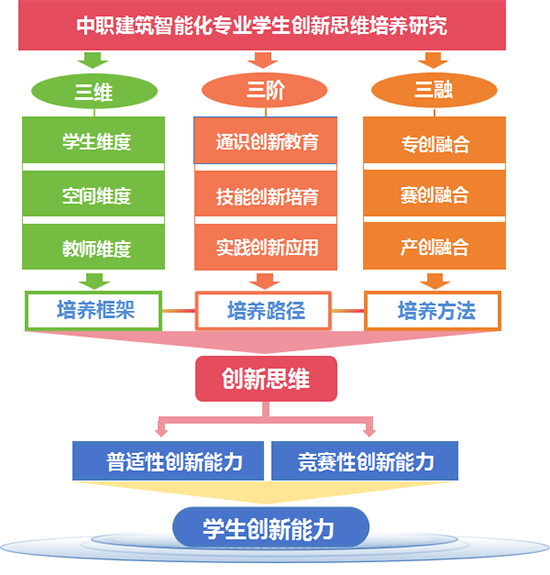 建筑智能專業組注重學生創新思維培養,通過搭建“1+1+N”多元創新平臺,為學生提供創新項目孵化的空間、技術支持和實踐機會;通過構建“通識創新教育、技能創新培育、實踐創新應用”三階培養,實現從“創新課程”向“課程創新”轉變,進而實現學生技能“微創新”。