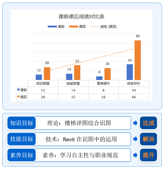 工程造價專業組則以“樓梯詳圖綜合識讀”作為教研實踐載體,經過“三維破壁的初探、問題診斷的磨課、虛實融教的精研、同課共生的延展”,借助BIM技術系統推進《建筑識圖》課程的教學改革,讓學生在識圖能力上實現跨越式提升。