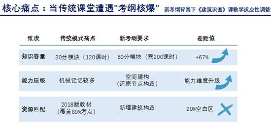 厚生建筑專業組基于新考綱的變化,從研讀新考綱內容、對比新舊教材、分析師生困惑等角度,尋找提升學生識圖能力的發力點;專業組教師通過一次次教學研磨,優化教學方案、創新教學方法、完善資源建設,實現了《建筑識圖》教學活動的調整,保障教學精準適配。