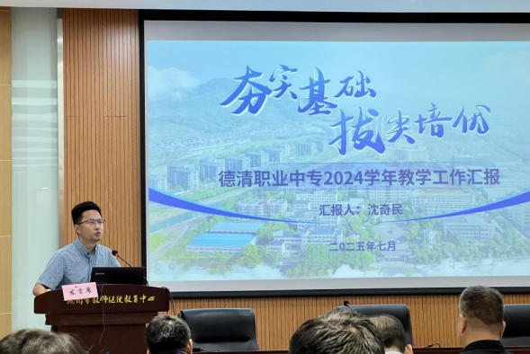在7月29日召開的全市中職學校教學工作會議上,德清職業中專以高職高考備考工作為重點作交流發言,湖州市技師學院、德清縣職業中專執行校長沈奇民代表學校介紹了相關經驗。