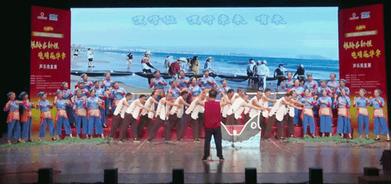此次合唱團(tuán)帶來的無伴奏混聲合唱《舟山漁工號子 漁家樂》,突破性地將《舟山漁工號子》《拔蓬號子》等國家級非遺漁歌改編為合唱形式。表演中,成員們以歌聲為筆、動作為墨,生動復(fù)刻了漁民“開洋——起錨——揚帆——捕撈——滿載而歸”的完整勞作場景,將舟山漁民與漁嫂勇于爭先的勁頭、海納百川的胸懷與熱愛生活的熱忱展現(xiàn)得淋漓盡致。