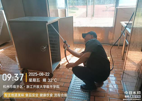 學院對食堂進行“搬家式”大掃除:移開所有設備,徹底清潔墻面、地面、排水溝;委托專業機構檢測直飲水、桶裝水水質,合格后方可供水;更新防鼠板、滅蠅燈等“三防”設施,消除病媒生物滋生風險。