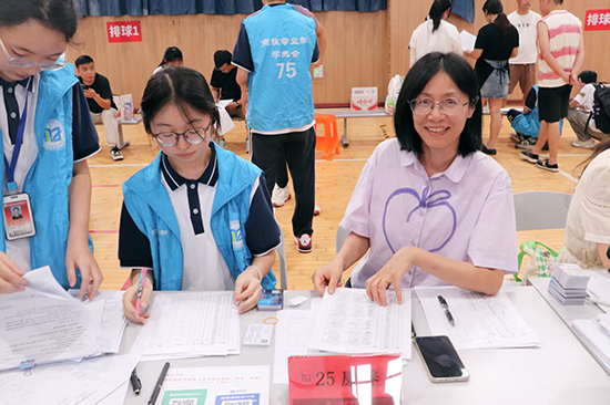早晨7時30分開始,新生與家長陸續(xù)抵達學校。學校黨員同志們以身作則,早早來到迎新現(xiàn)場,向每一位遠道而來的新生送上最誠摯的歡迎與祝福。行健館作為報到主會場,早已布置妥當,各班班主任和學生志愿者們提前到崗,以飽滿的精神狀態(tài)迎接新生的到來。校園交通管理有條不紊,學校車輛引導組在校內各路口引導車輛即停即走,全力保障校園交通暢通。學生宿舍同樣忙碌而溫暖,老師與學生志愿者協(xié)助新生辦理入住,主動幫助搬運物品,讓新生初入“家”門便感受到濃濃的歸屬感。