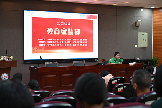 王博士學(xué)識淵博,貫通中西。她引經(jīng)據(jù)典,從中國古代經(jīng)典《禮記?學(xué)記》《師說》到國外學(xué)者培根、雅思貝爾斯關(guān)于師德的論述,從內(nèi)在修養(yǎng)與外在行為兩個維度,深入闡釋了師德師風(fēng)的豐富內(nèi)涵。期間,王博士分享了一系列真實的反面案例,并結(jié)合習(xí)近平總書記提出的好老師 “四個標(biāo)準(zhǔn)”,警示全體教師要堅守“三個堅持、三個突出、四個嚴(yán)格、四個強(qiáng)化”的師德底線,筑牢思想防線。講座最后,王博士還就教育家精神進(jìn)行了講解,強(qiáng)調(diào):要堅定理想信念,爭做胸懷“國之大者”的典范。
