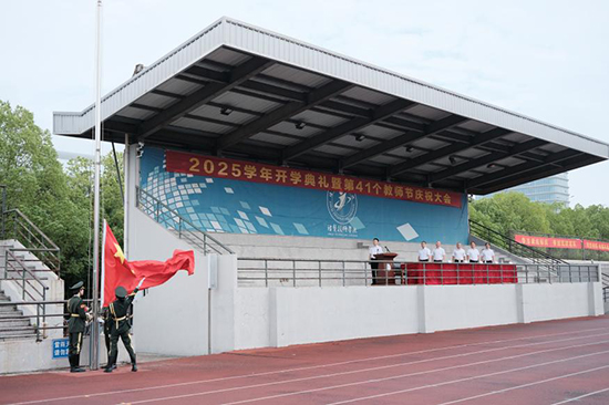 上午8時,開學典禮在莊嚴的國歌聲中拉開帷幕。在全體師生的注目禮下,鮮艷的五星紅旗冉冉升起,全場齊聲高唱國歌,愛國情懷在每個人心中激蕩。