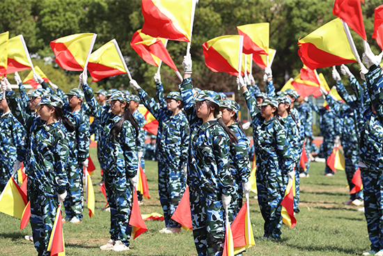 隨后,200名同學(xué)帶來(lái)海軍旗語(yǔ)操展示。軍旗飄揚(yáng)間,每一個(gè)動(dòng)作都如同奏響一曲歌頌紀(jì)律、協(xié)作與忠誠(chéng)的雄壯軍樂(lè),完美詮釋了嚴(yán)謹(jǐn)、協(xié)作、勇敢、忠誠(chéng)的精神風(fēng)貌。