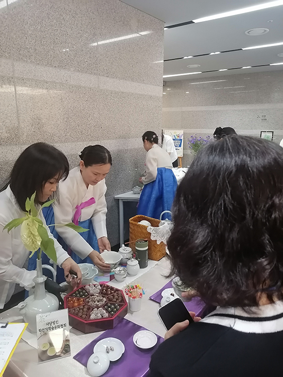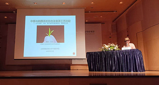 16日下午,大邱廣域市壽城區(qū)藝術(shù)中心會(huì)議廳,根據(jù)大會(huì)安排,湖州陸羽茶文化研究會(huì)副會(huì)長(zhǎng)吳震老師作為中方4位茶人之一,宣講分享了《中國(guó)與韓國(guó)茶的形態(tài)及制茶工藝比較——試以紫筍、岕茶、莫干黃芽和青苔錢茶、真碧茶為例》論文。來(lái)自韓國(guó)社會(huì)各界人士、院校師生等200余人蒞臨研討會(huì)現(xiàn)場(chǎng)。茶歇期間,大家品享韓國(guó)特色茶,并觀摩了“尹孝石·韓中日茶碗畫招待展”。
