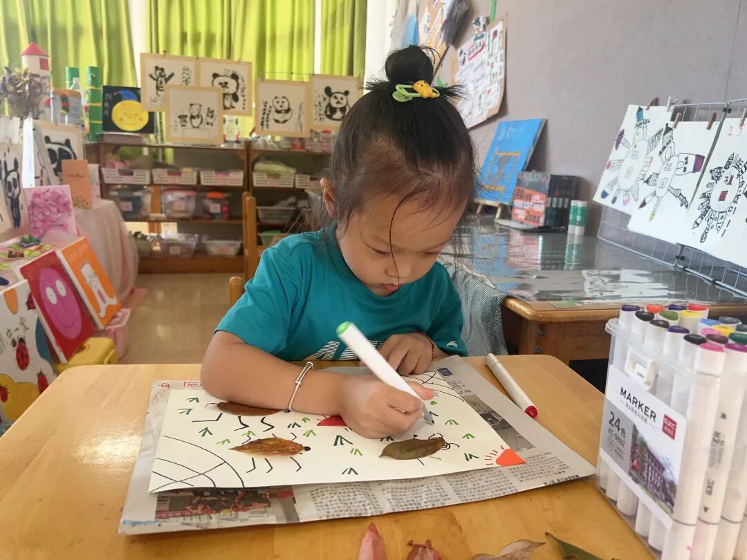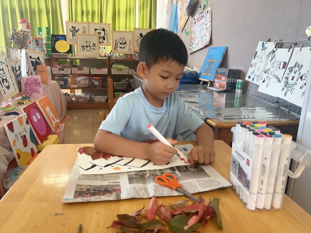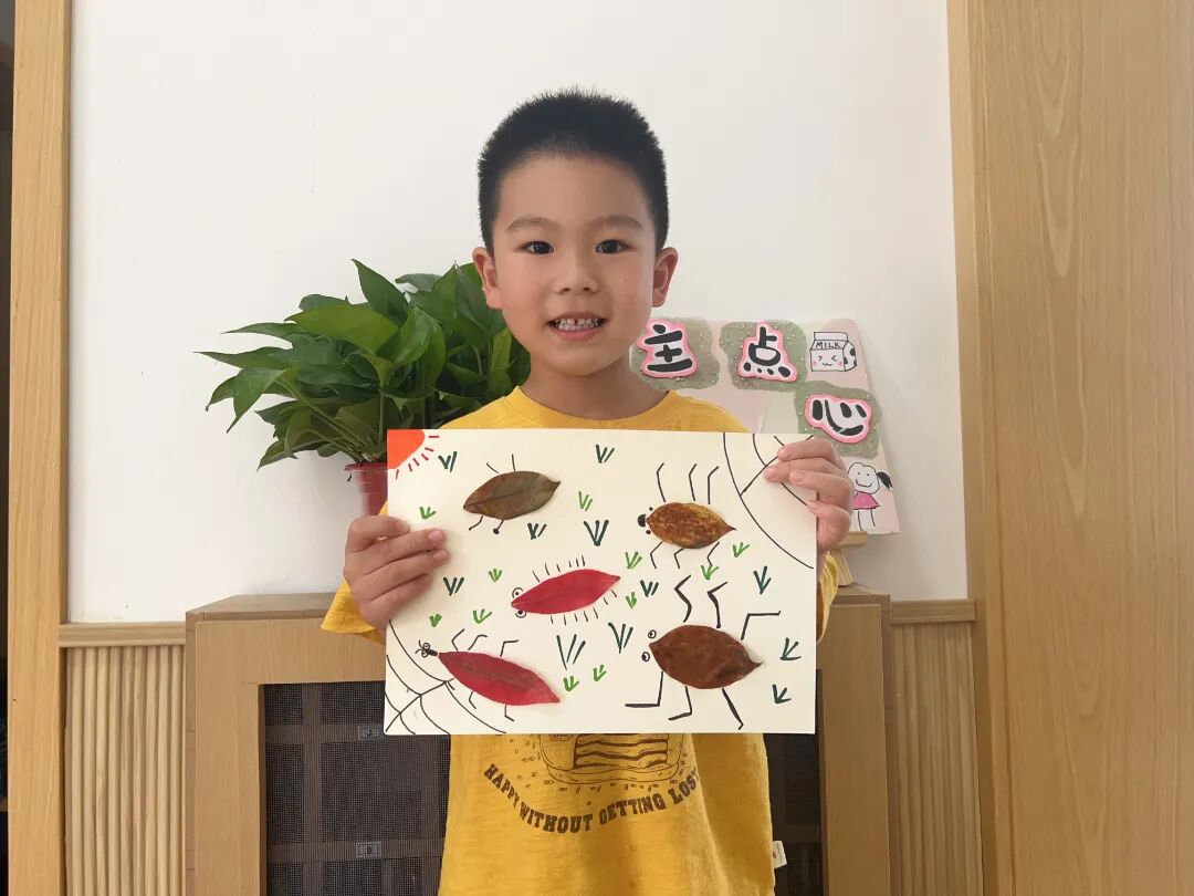秋葉感悟。秋天的大自然到處都是美景,來一場美上加美的活動吧。用樹葉拼貼圖案,不乏藝術(shù)享受之美。各色各樣的樹葉,在幼兒們的精挑細(xì)選下來到手中,坐在教室,對這些不同色彩、形狀的樹葉拼貼組合,不一會兒就變成了一幅幅美麗的畫。樹葉拼貼畫,讓幼兒們對植物有了更深的觀察和記憶,創(chuàng)意拼貼,一幅幅畫展示了幼兒們的想象力及創(chuàng)造力。