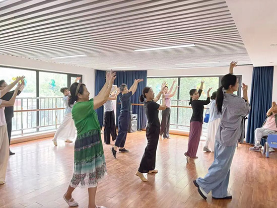 抬手皆融詩畫意,轉(zhuǎn)身盡顯雅柔魂。9月26日上午,中國舞班內(nèi)雅致滿溢,新老學(xué)員們滿懷熱忱開啟學(xué)習(xí)新程。課程聚焦中國舞基礎(chǔ)身韻,學(xué)員們隨老師指導(dǎo)舒展肢體,在抬手轉(zhuǎn)身間感受柔美韻律,于一招一式里觸摸傳統(tǒng)文化的溫度。