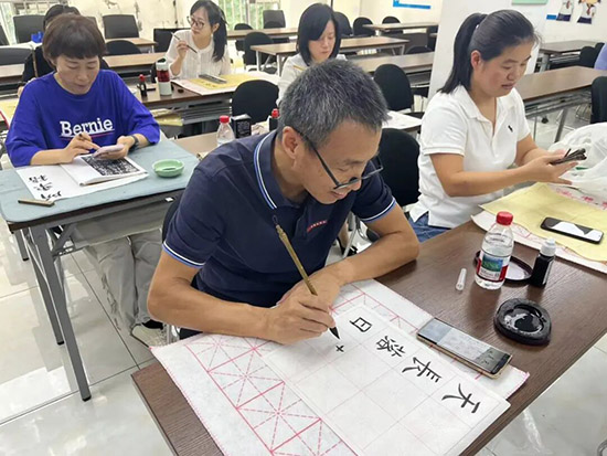 楷隸行草皆入趣,筆墨紙硯共迎新。9月22日上午,秋季書法班再度歸來。教室內(nèi)墨香四溢,案桌上整齊擺放著宣紙、毛筆與硯臺。首次課上,學(xué)員們側(cè)耳傾聽,點(diǎn)頭記下要點(diǎn)。學(xué)員們于橫豎撇捺間,既學(xué)到了書法技巧,更感受到了傳統(tǒng)文化的溫潤魅力。