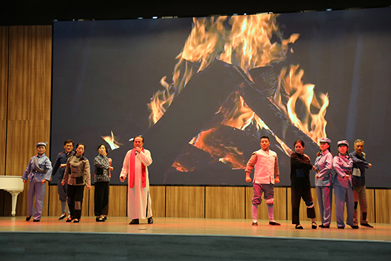 演出圍繞“山河記”“英雄豐碑”“傳承之路”三大篇章漸次展開。舞臺上的銀發表演者平均年齡65歲,卻以飽滿的熱情,將烽火歲月中的故事一幕幕重現。
