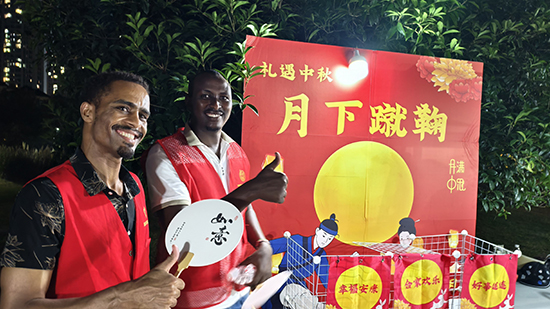 活動伊始,杭州雜技總團帶來的精湛表演率先點燃全場熱情,靈動技藝與絢麗舞臺效果交織,引得現場掌聲與歡呼聲此起彼伏。隨后,精心設計的趣味游園環節成為中外居民互動的“主陣地”:“海底撈月”的巧思、“投壺雅射”的雅致、月下蹴鞠的活力,讓不同膚色的居民爭相競技,在沉浸式體驗中感受古典禮樂之韻;猜燈謎時的共同思索、捏面人時的攜手創作、品糖葫蘆時的甜蜜分享,更讓中華傳統文化的魅力在互動協作中悄然傳遞,成為連接心靈的紐帶。