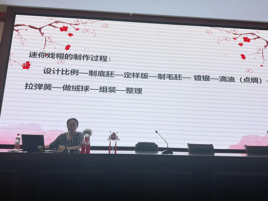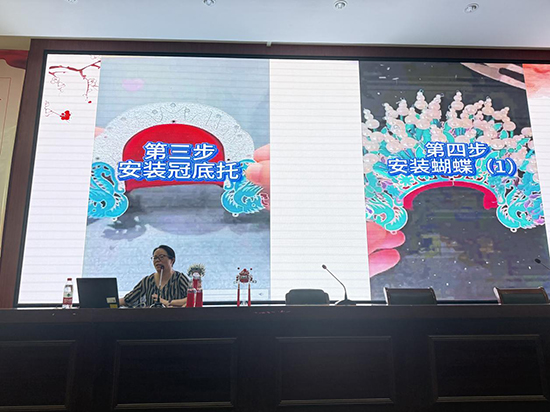 講座的核心亮點(diǎn),在于李大師對(duì) “迷你鳳冠” 這一創(chuàng)新文創(chuàng)產(chǎn)品的深度分享。她向大家生動(dòng)展示了如何將舞臺(tái)上那些龐大、華麗、屬于帝王將相和后宮佳麗的鳳冠,通過(guò)精巧的設(shè)計(jì)與精湛的技藝,微縮成一件件精美絕倫、可置于案頭欣賞的文創(chuàng)珍品。從最初設(shè)計(jì)靈感的汲取,到材料的精心挑選,再到鑲嵌等數(shù)十道復(fù)雜工序的簡(jiǎn)化與創(chuàng)新,李大師娓娓道來(lái)。她不僅展示了成品之美,更生動(dòng)詮釋了非遺技藝如何在堅(jiān)守核心精髓的同時(shí),通過(guò)創(chuàng)造性轉(zhuǎn)化和創(chuàng)新性發(fā)展,巧妙融入現(xiàn)代審美與生活,使其煥發(fā)出嶄新的生命力。