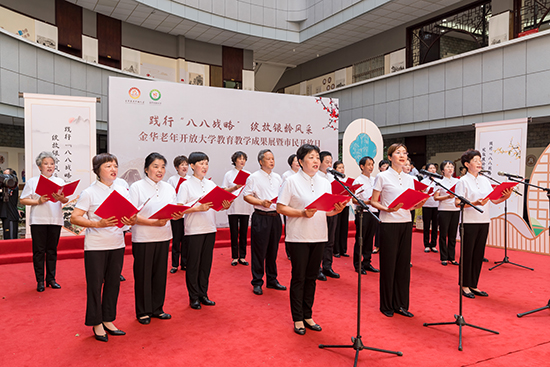 1.一項老年思政教育體系。金華老年開放大學以深化老年思政教育改革創新為抓手,從“建教材、豐內涵、拓活動”著力,在校內推行構建全員全過程全方位的“銀齡大思政”教育體系。