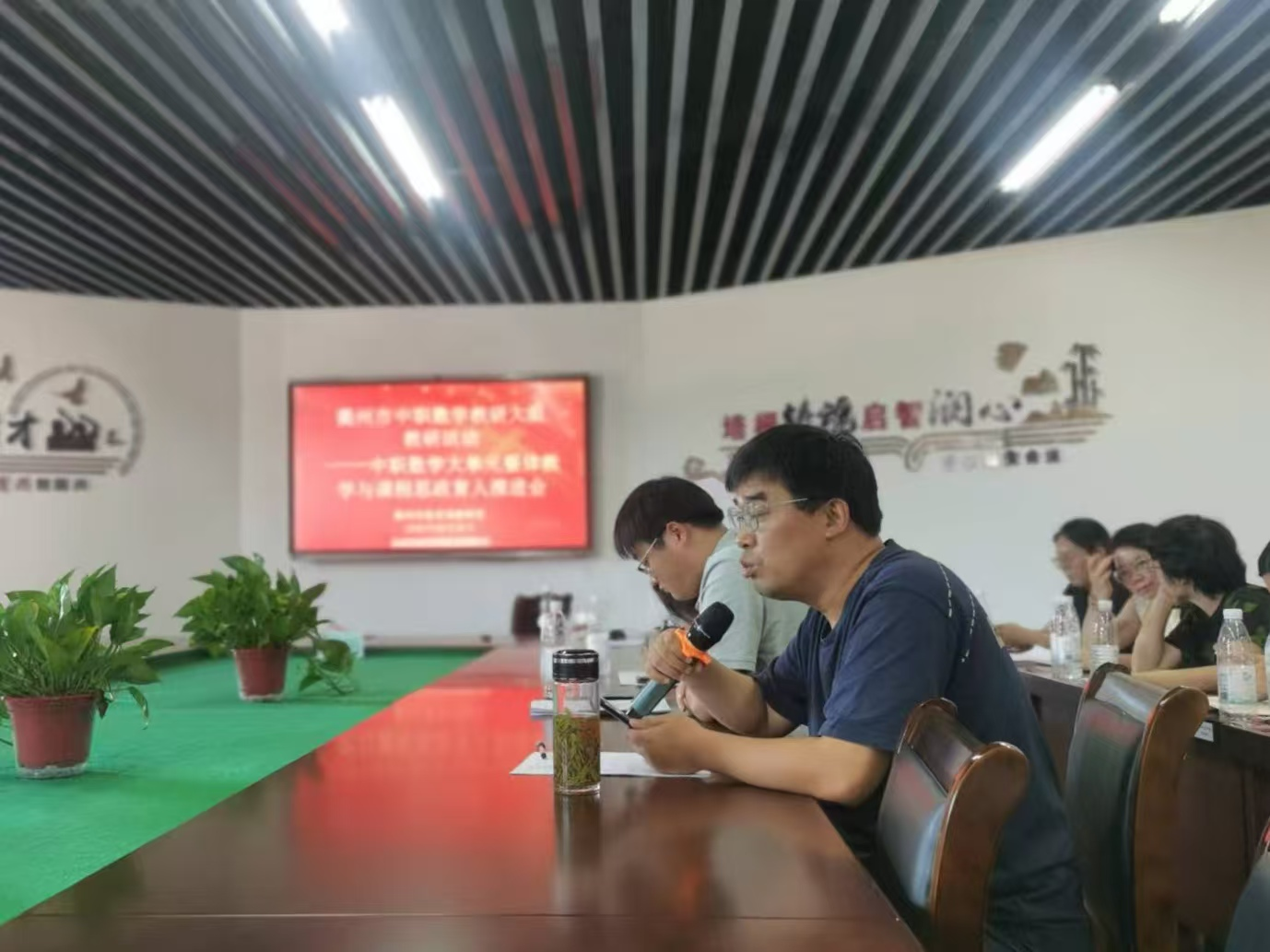 午后的研討環(huán)節(jié)聚焦實踐落地,由浙江省衢州數(shù)字工業(yè)化學校正高級徐春紅老師統(tǒng)籌主持。首先徐老師對全市高一上學期期末考試成績進行通報,結合學情數(shù)據(jù)精準分析教學現(xiàn)狀,明確了下一階段的教學重心。其次,由衢州第二中專王建軍老師作課程思政學習要點匯編的集體備課與教學研討,并由衢州理工學校的正高級劉小康老師作總結性發(fā)言:強調數(shù)學老師在組織教學過程中要注意區(qū)域文化產(chǎn)業(yè)特色,遵循學科特點,探索衢州本地數(shù)學文化特色。接著由各校數(shù)學教研組長依次分享了各校在數(shù)學教學提質、大單元整體教學、課程思政育人等方面的實踐經(jīng)驗,為與會者提供了可借鑒的教學思路與實施路徑。
