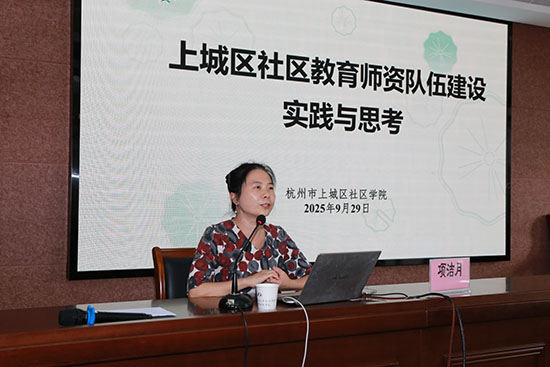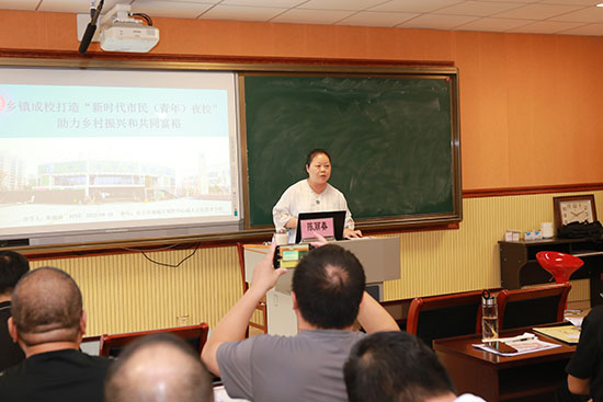 杭州市上城社區學院院長項潔月帶來《上城社區教育師資隊伍建設實踐與思考》專題報告,與大家分享了上城區社區教育師資隊伍“選-管-育-激”的一體化培養機制和“三會一實踐”“引培并舉”的專兼職教師培養策略,從而培養了一支系統有地位、業內有尊嚴、自身有保障的多元化、專業化的師資隊伍,也為長興縣社區教育師資隊伍建設提供了可借鑒的科學路徑。安吉縣遞鋪成校陳麗春老師分享了近兩年學校在打造“新時代市民夜校”品牌的實踐探索。她指出舉辦市民夜校將是社區教育工作的常態,開發好課程、遴選好師資、優化好服務是辦好市民夜校的三大關鍵點;她精選的市民夜校招生簡章、記錄培訓過程點滴的視頻、語重心長的不足反思,讓長興同行在今后“市民夜校”工作推進中少走彎路,少遇挫折。