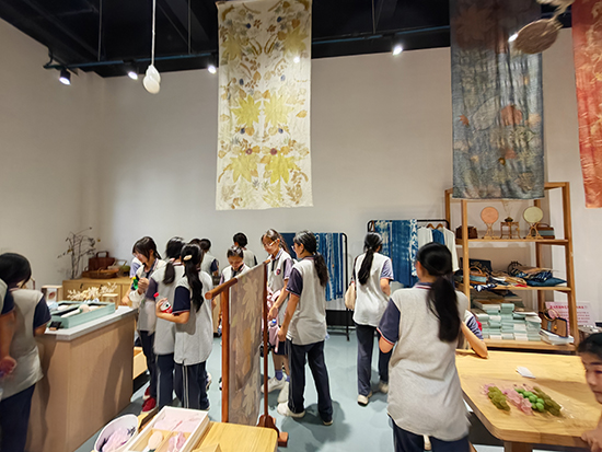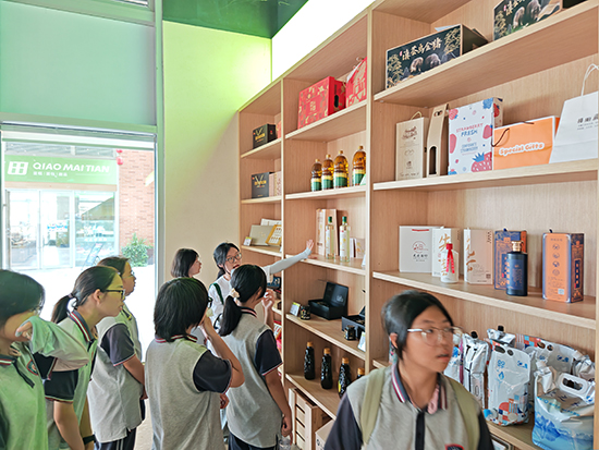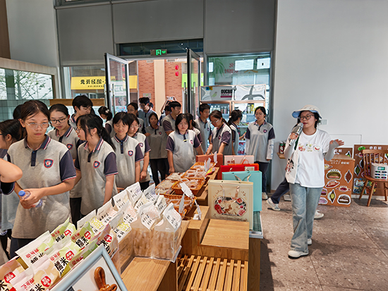 隨后,同學們參觀了集公共服務、文化交流與鄉(xiāng)村創(chuàng)業(yè)于一體的傳化農(nóng)創(chuàng)中心,調(diào)研了鄉(xiāng)村特色產(chǎn)業(yè)發(fā)展路徑。通過探訪精釀啤酒加工工坊、鄉(xiāng)村生態(tài)藝術(shù)植物染工坊、蝴蝶工坊自然課堂等農(nóng)創(chuàng)企業(yè),了解大米、菜籽油、梨膏等優(yōu)秀農(nóng)產(chǎn)品及植物精靈、植物盲盒等創(chuàng)新產(chǎn)品,同學們對農(nóng)創(chuàng)村“產(chǎn)業(yè)融合、品牌打造、服務惠民”的鄉(xiāng)村振興模式有了直觀認知。
