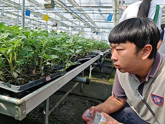 在農(nóng)創(chuàng)村相關(guān)負責人帶領(lǐng)下,同學們首站走進謝徑安傳化植物科學中心,化身“未來農(nóng)夫”,系統(tǒng)了解生物育種、智能播種、數(shù)字種苗等現(xiàn)代農(nóng)業(yè)技術(shù)。從實驗室科研攻關(guān)到種苗工廠產(chǎn)業(yè)化應用,同學們深刻感受到科技對農(nóng)業(yè)生產(chǎn)的革新力量。24園林班的楊旭斌說:“這里的工作環(huán)境非常好,我將加倍努力,爭取以后來這里實習、工作。”