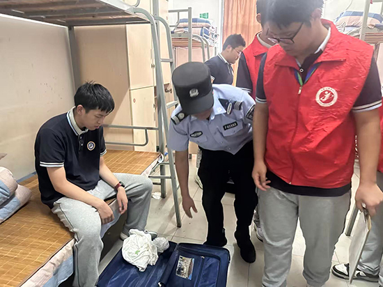 城東派出所由楊金龍警官帶隊,27名干警參與此次活動。在學生干部的協助下,由相關班主任帶隊,干警們對學生寢室進行了認真檢查,特別是對于衣柜、皮箱等容易藏匿物品的地方進行了逐個檢查。