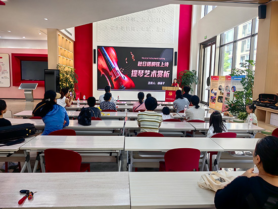 鑒賞課上,胡曉光老師與女兒并未從艱深的樂理切入,而是以一首耳熟能詳的《牧歌》選段開場,瞬間拉近了居民與古典音樂的距離。琴弓在弦上優雅滑動,如泣如訴的旋律將秋日的思緒娓娓道來,縈繞在活動現場的每一個角落。居民們凝神聆聽,沉醉于音樂編織的詩意世界。