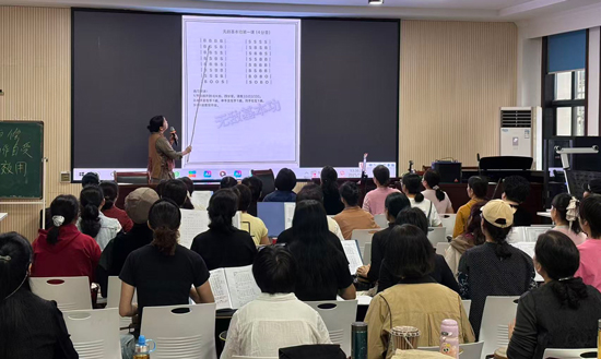 在大家熟練掌握了基礎節奏后,本節課的重頭戲——學習流行金曲《橋邊姑娘》的非洲鼓伴奏部分正式開啟。禪兮老師將歌曲的節奏逐段分解,耐心講解每一個節拍的重音與技巧,并親自示范。旋律悠揚的《橋邊姑娘》與熱情奔放的非洲鼓節奏巧妙融合,產生了一種獨特而動人的藝術效果。學員們全神貫注,緊跟老師的教學步伐,從生疏到熟練,一遍遍練習,教室里回蕩著歡快而和諧的鼓聲。