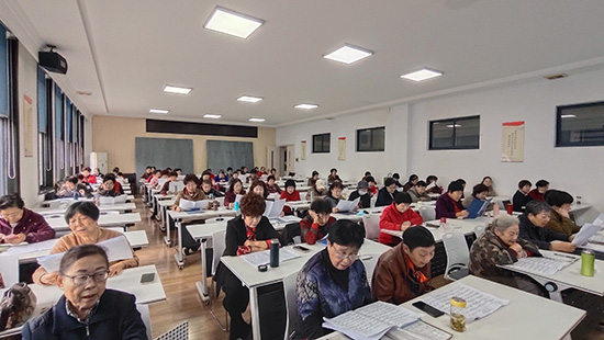 10月22日上午,安吉縣社區教育學院昌碩分院(昌碩成校)內鑼鼓聲揚,曲韻悠長,一場面向老年越劇愛好者的培訓在這里熱烈舉行。來自全縣各個鄉鎮的八十六名戲迷齊聚一堂,在專業老師的指導下,共同研習越劇經典《梁山伯與祝英臺》選段《樓臺會》,感受傳統戲曲的獨特魅力。
