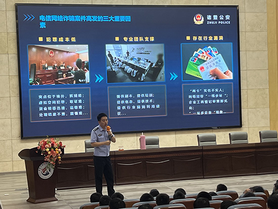 談及預防電信詐騙,魏警官精準剖析了學生群體易遭遇的詐騙套路;而在識毒禁毒環節,他更是帶來派出所近期收繳的“笑氣”實物樣品現場展示,嚴肅警示:“這看似是‘娛樂’用品,實則是新型陷阱,大家的好奇心絕不能碰觸法律紅線!”整場講座互動感十足,鮮活的案例讓每一位學生都沉浸其中,引發深度思考。