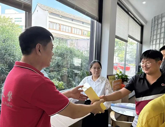 愛心禮包暖人心:小物件藏大關(guān)懷,情誼留心間。活動接近尾聲,紅楓義警們捧著愛心禮包走向大家——里面裝著保溫杯、反光貼,還有印著交通安全標(biāo)語的小扇子。“天氣轉(zhuǎn)涼了,喝口熱水暖暖身子;晚上騎車,反光貼能讓別人早點看見你。”義警們的叮囑像秋日暖陽,熨帖又實在。“平時總見他們在路口疏導(dǎo)交通、在街邊幫人指路,今天一起玩、一起學(xué),才更懂‘義警’倆字的分量。”一位環(huán)衛(wèi)工人的話滿是感動;外賣小哥們也紛紛點贊:“感覺自己被惦記著,心里熱乎乎的。”