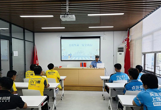 安全課“接地氣”:把守護(hù)說進(jìn)勞動者心里。“師傅們天天在路上跑,安全比啥都重要!”楓橋鎮(zhèn)交警中隊民警俞洋飛手持事故案例圖,為外賣員、環(huán)衛(wèi)工人帶來“關(guān)愛生命 安全出行”主題交通安全課。他不僅細(xì)致拆解騎行規(guī)范、路口觀察要點,還手把手教大家突發(fā)情況避險技巧,句句貼緊戶外勞動者的日常。臺下,外賣小哥、環(huán)衛(wèi)工人聽得格外認(rèn)真。“我們天天在路邊巡邏,知道他們風(fēng)里來雨里去的不易。”俞洋飛的話道出牽掛;紅楓義警老陳更是感慨:“這課聽得實在!是真把我們的安全放在了心上。”