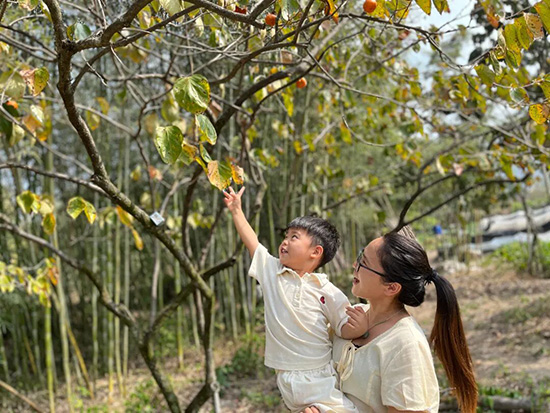 柿子樹上掛滿橙紅的“小燈籠”,親子采摘活動就此開啟。家長和孩子手牽手,有的踮腳夠柿子,有的用小網兜穩穩接住,歡聲笑語灑滿果園。摘下“戰利品”后,孩子們圍在一起觀察:“柿子皮是光滑的還是粗糙的?”“里面的果肉是什么顏色?”最后品嘗時,軟糯香甜的口感讓味蕾記住了霜降的味道,師幼、親子協作的時光,也成了這個節氣最溫暖的回憶。
