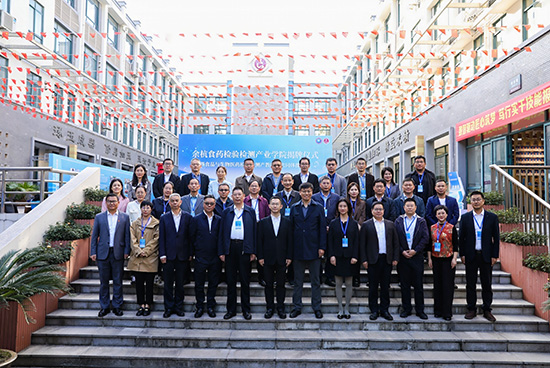 儀式結束后,與會嘉賓合影留念。隨后活動進入第二階段,開展了余杭區食品藥品監測中心專家講座、校企分組研討,并組織參觀了浙江海虹控股集團有限公司國家級檢驗檢測中心。