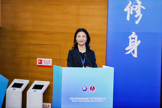 杭州市教育局職成教處副處長張丹表示,浙江省首批縣域產業學院落戶余杭、扎根良渚,既是對杭州職業教育的信任,更是對余杭職教與產業融合發展的認可與期許。她對產業學院發展提出三點期望:一是以產教融合強根基,精準對接產業需求,推動企業標準進課程、監測車間進課堂,培養服務本地兼具國際視野的復合型人才;二是以職業啟蒙孕土壤,點亮少年技能夢想,要依托學院企業資源建設中小學職業體驗基地,把食藥檢測等技能融入勞動教育,讓孩子們從小播種匠心、主動選擇未來;三是以普職融通破格局,要推動職高與普高課程共享、平臺共建,打破教育壁壘,讓每一類學生都能找到成長之路。