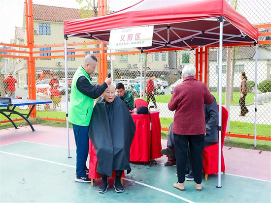 從調整發長到修剪劉海,從梳理造型到清理碎發,理發師傅們一絲不茍,根據每位老人的臉型、發質特點量身設計發型。當天,共有30多位老年人享受到了這場“家門口的福利”,原本有些凌亂的頭發經過修剪后變得整潔利落,老人們對著鏡子露出滿意的笑容,連連稱贊:“不用出門就能剪頭發,師傅手藝還好,真是太方便、太貼心了!”