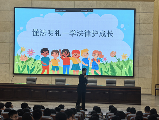 隨著開場時間到來,大屏幕上一張親切的照片與一串亮眼的頭銜同步出現:“諸暨市司法局楓橋司法所所長”“2023年浙江省優秀少先隊輔導員”“2024年3月諸暨市‘最響紅話筒’”“浙江省8090理論宣講成員”。緊接著,孟柳霞所長矯健走上講臺,以《法治護航青春 安全伴我成長》為題,開啟了一場干貨滿滿的法治課,內容聚焦“懂法明禮—學法律護成長”“慧眼識騙—防范電信詐騙”“珍愛生命—遠離毒品危害”“拒絕欺凌—守護校園平安”四大板塊。