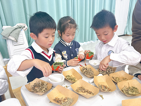 活動在一節內容扎實、貼近生活的“秋季養生小課堂”中拉開序幕,長輩們認真的聆聽志愿者講師的專業講解,頻頻點頭給與回應,現場氛圍一下子活躍起來。隨后,活動進入了充滿童趣與暖意的親子互動環節——手工制作“柿柿如意”艾草香囊。20余組家庭的孩子和長輩們在志愿者的耐心指導下,興致勃勃地動手制作。孩子們爭相拿起研磨工具,小心翼翼地搗磨細料,爺爺奶奶、外公外婆們也一起加入進來,親子齊動手,所見之處盡是溫馨的畫面。最后,充滿藥香的艾草、薄荷粉被仔細裝袋、收口,每一個步驟都凝聚著孩子們專注的愛。孩子們拿著親手制成的、寓意著美好祝愿的“柿柿如意”香囊,向爺爺奶奶、外公外婆送上最純真、最誠摯的節日祝福。