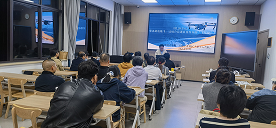 本期培訓采用“理論學習+模擬實訓+戶外實操”三階遞進模式,課程體系科學完善,涵蓋了無人機發展史、飛行原理、安全法規等理論基礎,以及無人機設備組裝、調試、基本飛行動作、航線規劃等,注重理論與實踐緊密結合。第一節課,專業講師系統性地講解了國家及地方關于民用無人機飛行的相關法律法規、空域申請流程以及飛行禁忌。他強調,“無人機不是玩具,每一次起飛都意味著責任”,讓學員們從第一天起就樹立牢固的安全飛行意識。講師向學員們展示了一架實體多旋翼無人機用于講解基本結構,“這是機臂、電機還有螺旋槳、電調以及云臺……”講師最后演示了最基礎的的起飛與懸停,在座的學員無不被無人機技術深深吸引。