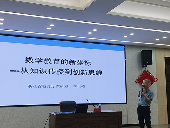 培訓(xùn)期間,浙江省教育廳教研室初中數(shù)學(xué)教研員李惟峰作主題為《數(shù)學(xué)教育的新坐標(biāo)——從知識(shí)傳授到創(chuàng)新思維》的專題講座,李老師從創(chuàng)新思維培養(yǎng)的背景、創(chuàng)新思維培養(yǎng)的關(guān)鍵、創(chuàng)新思維培養(yǎng)的建議三個(gè)維度深刻闡述了創(chuàng)新思維培養(yǎng)的重要性、內(nèi)容和路徑,為參訓(xùn)教師從“知識(shí)傳授”走向“素養(yǎng)教學(xué)”的轉(zhuǎn)變提供了理念上的更新和實(shí)踐上的引領(lǐng)。寧波市教育局教研室初中數(shù)學(xué)教研員楊一麗作主題為《理解課標(biāo) 解構(gòu)教材 賦能教學(xué)》的專題講座,講座從課標(biāo)主要的突破、教材修訂的主要方面、教學(xué)的思考等方面展開,同時(shí)結(jié)合課例分析讓參訓(xùn)教師對(duì)課堂上如何讓學(xué)生的思維得到生長(zhǎng)與升華有了直觀的感知,為研題提供方向和框架。湖州市教育科學(xué)研究中心初中數(shù)學(xué)教研員沈瑩琪作主題為《讓孩子學(xué)會(huì)學(xué)習(xí):新課標(biāo)下初中數(shù)學(xué)深度教學(xué)的設(shè)計(jì)與思考》的專題講座,沈老師通過幾個(gè)案例的分析讓參訓(xùn)教師明白如何實(shí)現(xiàn)評(píng)價(jià)與教學(xué)的一致性并在教學(xué)中怎樣實(shí)現(xiàn)高路遷移和深度教學(xué),同時(shí)還強(qiáng)調(diào)數(shù)學(xué)教師一定要學(xué)會(huì)學(xué)習(xí),要努力把我們的數(shù)學(xué)課上得更深一點(diǎn)、更有味道點(diǎn),讓孩子們學(xué)起來更輕松更愉快。