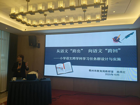 柯城區(qū)鹿鳴學(xué)校書記、校長鄭美宏以《中小學(xué)科創(chuàng)發(fā)展的鹿鳴實(shí)踐:從理念到行動(dòng)的全面革新》為題,分享了學(xué)校短期激發(fā)學(xué)生科學(xué)興趣、長期培養(yǎng)基礎(chǔ)能力,構(gòu)建“空間+三級課程+項(xiàng)目驅(qū)動(dòng)+評價(jià)閉環(huán)”科創(chuàng)教育立體網(wǎng)的完整實(shí)踐。衢州市教育事業(yè)發(fā)展中心王榮明作了題為《人工智能背景下的智慧校園建設(shè)與應(yīng)用》的分享。他指出生成式AI有內(nèi)容生成、多模態(tài)等特點(diǎn),賦能教育需依托數(shù)據(jù)、算法、算力三要素,還明確AI可替代部分重復(fù)勞動(dòng),但無法取代教師的“溫度、互動(dòng)、陪伴、引導(dǎo)”——教師仍是學(xué)生心理健康的守護(hù)者與成長引路人。衢州市教育局教研室副主任徐宏武圍繞《核心素養(yǎng)導(dǎo)向下作業(yè)設(shè)計(jì)的思考與實(shí)踐》主題展開分享,提出“無目標(biāo)不設(shè)計(jì)”等核心素養(yǎng)導(dǎo)向的作業(yè)設(shè)計(jì)“六大原則”。他借鑒學(xué)者觀點(diǎn),強(qiáng)調(diào)作業(yè)“重質(zhì)輕量、承認(rèn)差異”需分層,通過四類作業(yè)構(gòu)建協(xié)同育人橋梁,讓作業(yè)成為“思維成長階梯”而非“負(fù)擔(dān)”。衢州市教育局教研室小學(xué)語文教研員施燕紅聚焦小學(xué)語文跨學(xué)科教學(xué)要點(diǎn),作了主題為《從語文“跨出”向語文“跨回”——小學(xué)語文跨學(xué)科學(xué)習(xí)任務(wù)群設(shè)計(jì)與實(shí)施》的分享。講座兼具理論與實(shí)踐,立足語文本質(zhì)、融合多領(lǐng)域資源,還借案例拆解方法,助教師突破學(xué)科邊界,為落實(shí)學(xué)生核心素養(yǎng)提供清晰路徑。